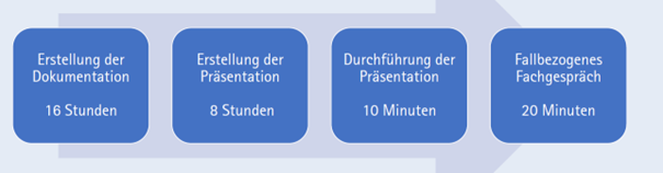 Über die Fachaufgabe hat der Prüfling eine Dokumentation sowie eine Präsentation zu erstellen und ein fallbezogenes Fachgespräch zu führen.